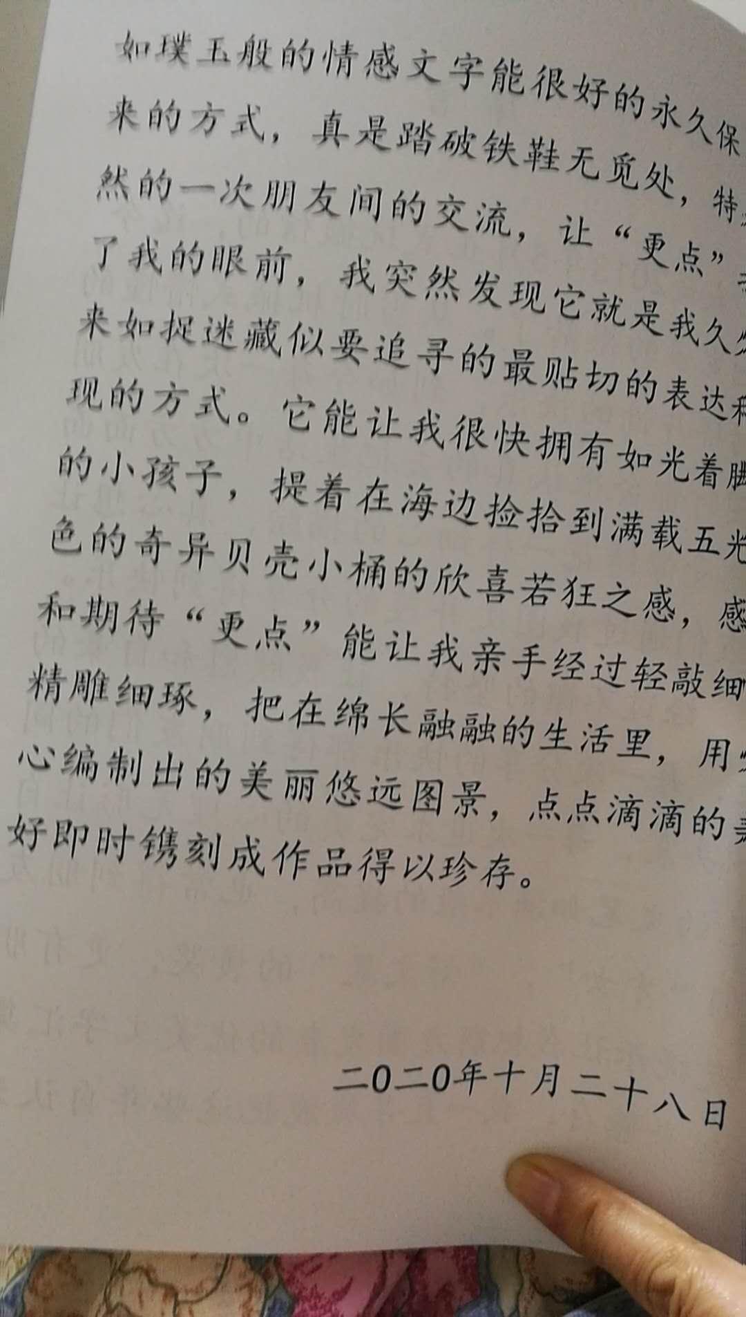 未来:评价分享下我的书哦 未来 书收到了,比我想象的更完美。印刷精美,图片清晰,排版合理,带给家人别样的欣喜,生活中琐碎,片断,瞬间的美好以这种表达式呈现,令家人在翻阅叶回甘无穷,鼓励我继续笔耕生活,我也有兴趣继续,这只是开始喽,谢谢更点。 评论 admin: 感谢亲的支持! 未来: 给更点点赞,很想成为你们的会员,希望你们增加视频制作的项目。