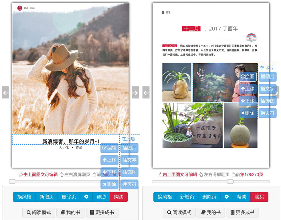 宝贝、旅游、毕业、聚会相册 写作、日志、博客、摘抄等文字书- 点击 或左右滑屏,可以翻页。